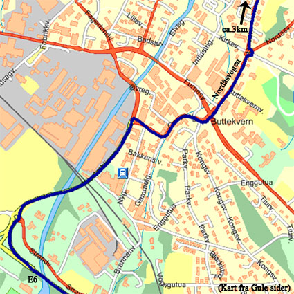 Kjør rett frem i første rundkjøring ved Veikroa/Esso og opp mot Brumunddal sentrum. Ta første gate til høyre - Øverbakkvegen.