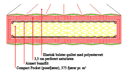Favoritt Krone med Compact Pocket og comfort soner er utviklet de siste årene. Høyelastisk naturlatex sammen med filtet polyestervatt gir en madrass med suverene ligge-egenskaper. Madrassen karakteriseres som medium/myk og passer for de fleste kroppsvekter. Av våre tre typer overmadrasser velger de fleste Latex overmadrass sammen med Favoritt Krone. Denne overmadrassen har det samme eksklusive bolster. De som ønsker "noe ekstra" velger Favoritt Krone. Spesialmål kan leveres.