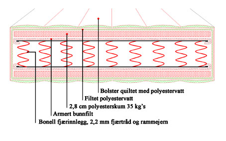 Våre Bonell fjærinnlegg har alle to rammejern som sikrer madrassens formstabilitet og øker dens brukstid. 15 års garanti mot fjærbrudd. Moderne produksjonsutstyr, høyverdige råvarer og årelang erfaring gir et resultat vi er stolte av.
